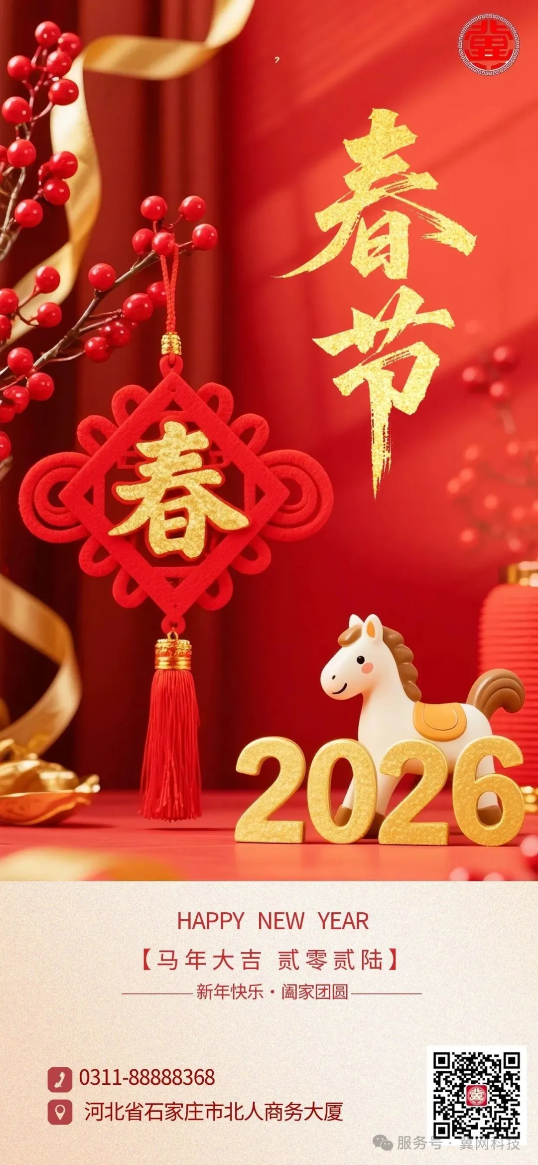 值此2026年新春佳节来临之际,冀网科技有限公司谨向社会各界朋友、全体员工及家人,致以诚挚的问候与美好的祝福!